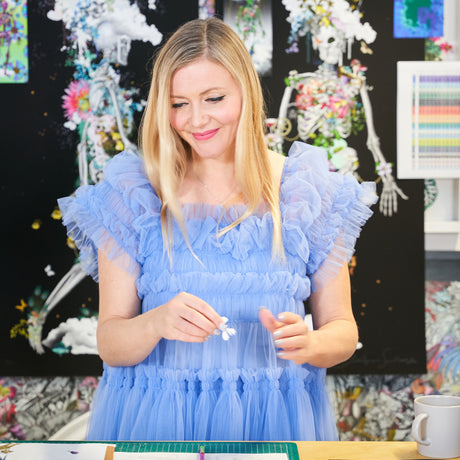 Kristjana’s much loved Queen Bee hovers steadily over London town, unburdened by the weight of the magnificent British crown, its antennae scanning for the most vibrant of districts, Carnaby, the home of Kristjana’s new pop up. The duck egg Thames rainbows under oscillating wings that hold aloft symmetrical stripes bearing tiny versions of the iconic red London trio - bus, phone box and post box. Motifs of melody and sound signify this Queen’s communicative role in nature, yet a diminutive timepiece alludes to the transitory nature of her being.